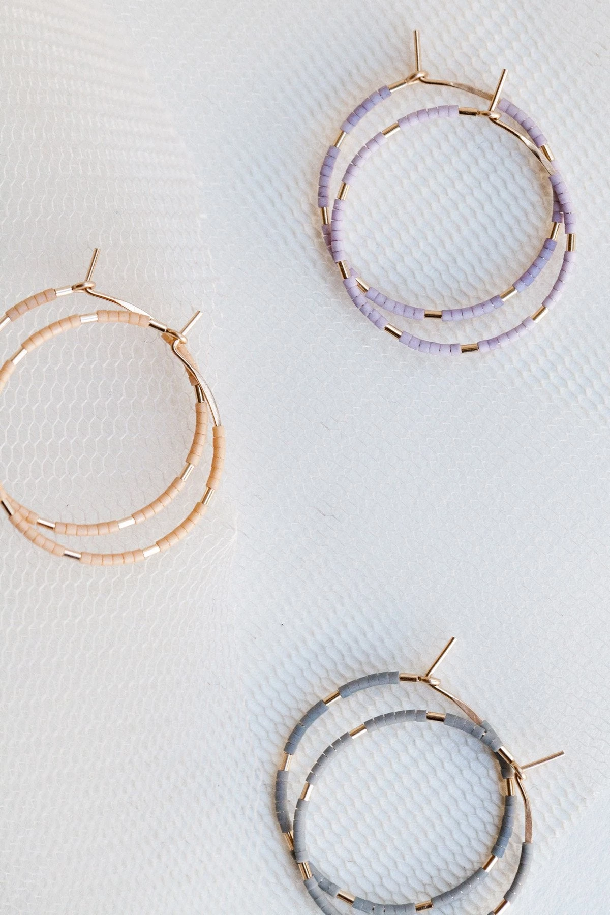 Materials – Japanese Miyuki matte glass beads, 14k gold-filled hoop, 14k gold-filled beads.