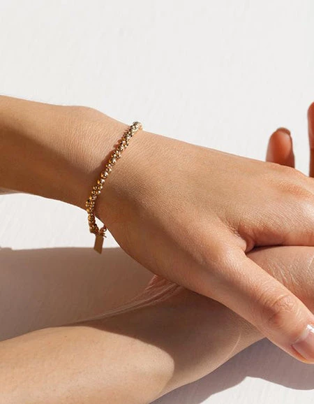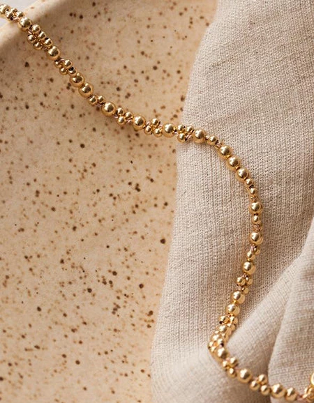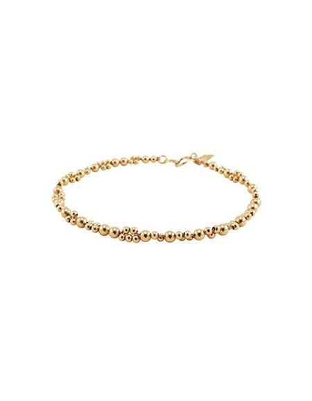 This bracelet is made of two silk cords woven with gold-filled round beads. The large and small beads look like bubbles and shine, creating a simple yet beautiful accent. You can also wear it in layers. You can wear it every day as a good luck charm.Â