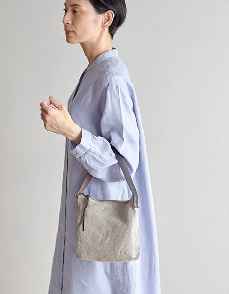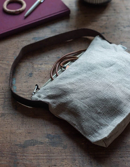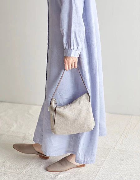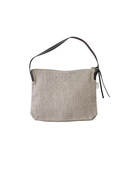 A one-handle shoulder bag with a leather handle.