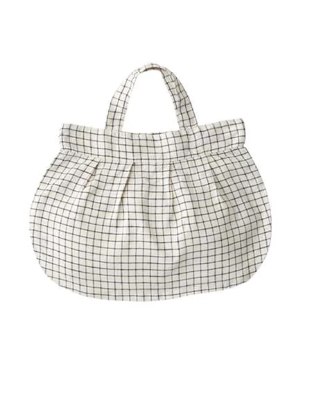A generous sized bag with a pretty round shape and pleats details on the outer side. One smaller pocket inside.