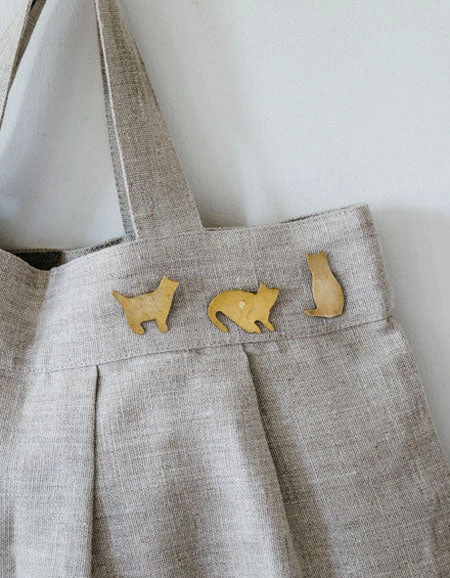 Adorable brooch made of brass, in the shape of a cat silhouette. This item is handmade and can therefore have irregularities, which, in our opinion, make it even more beautiful and covetable.