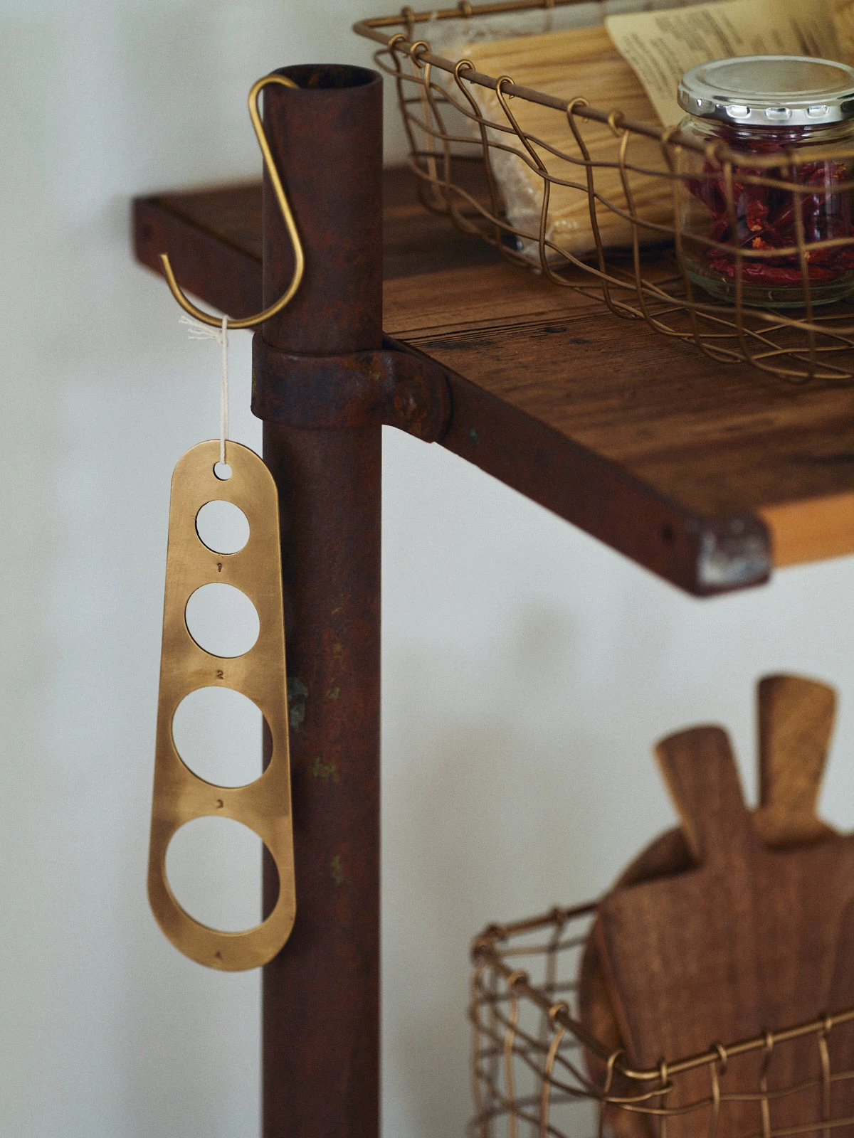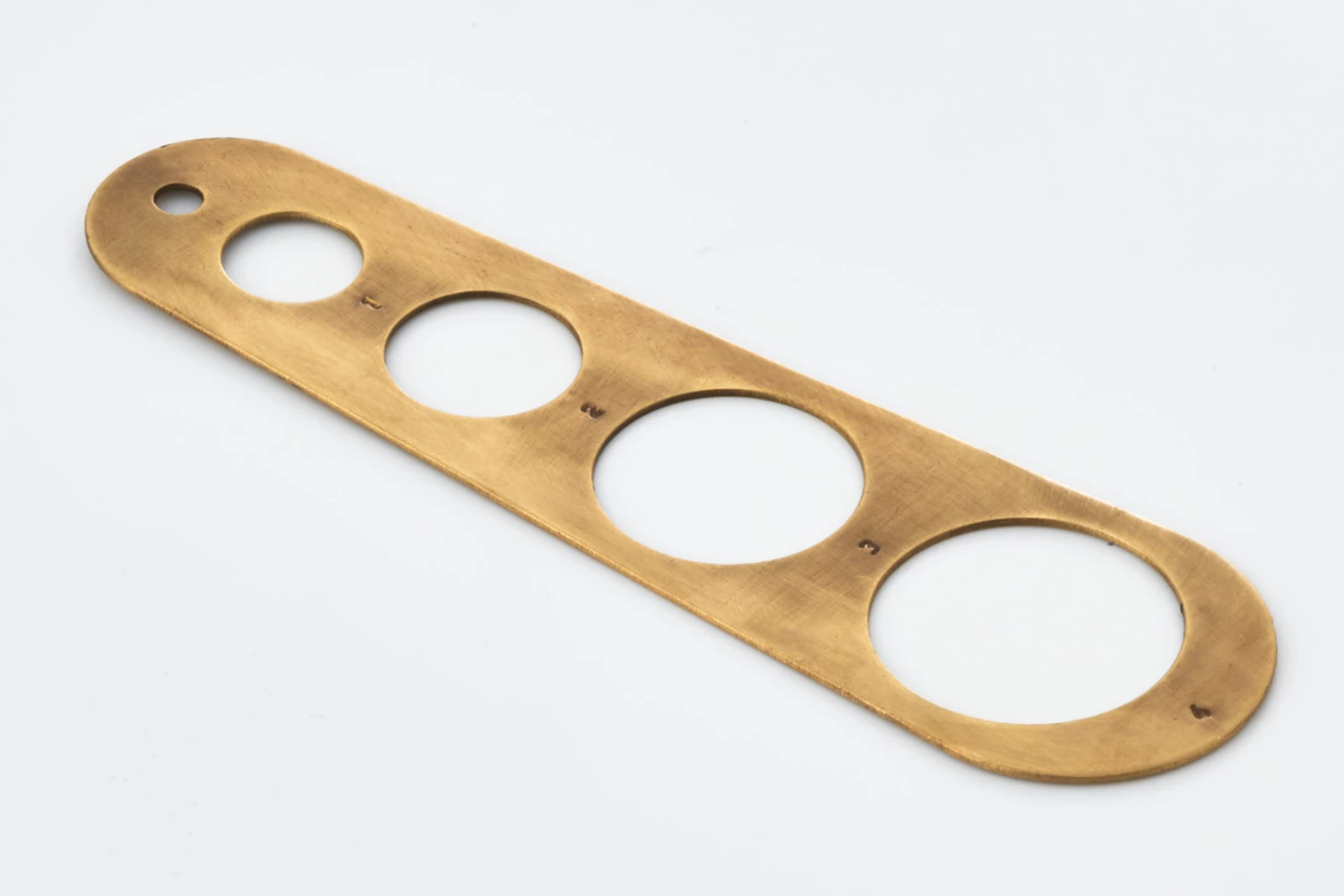 This beautiful Brass Pasta Measure has four different measuring holes to identify the correct amount of spaghetti for 1-4 servings.