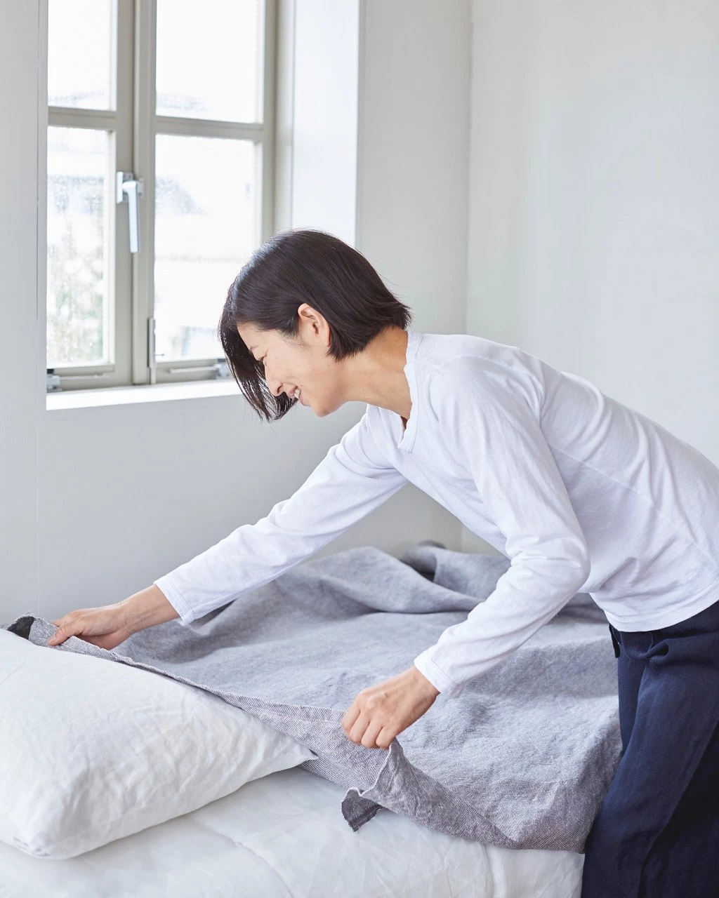 Not just for your bed, this thick chambray linen blanket will be perfect for use in your living room, on picnics, and at the beach.
