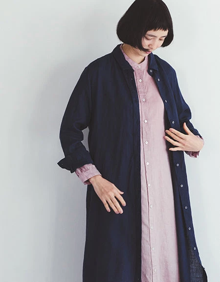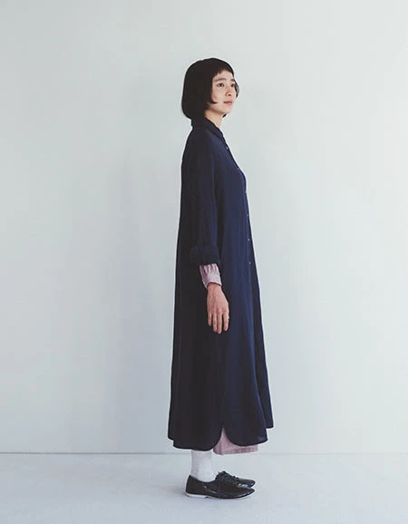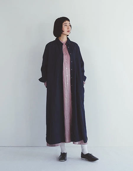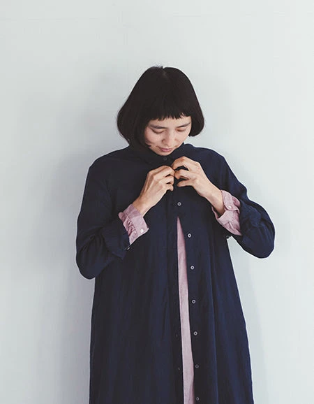 It is recommended not only as a dress, but also as a layered style with a thin knit or Tshirt inside by opening the buttons, or as a haori.