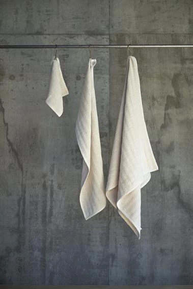 Super-soft and absorbent cotton bath towels woven in a herringbone pattern.Â