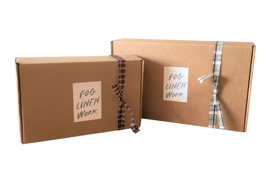 Please select this”Gift box service” to your basket, and we take care of packing your selections in a very pretty kraft gift box, with Fog Linen label and Fog Linen ribbon!