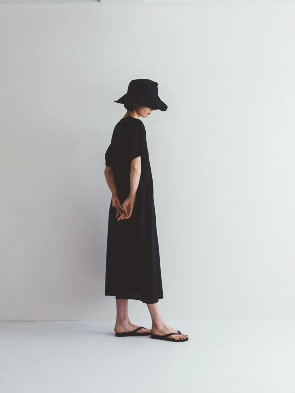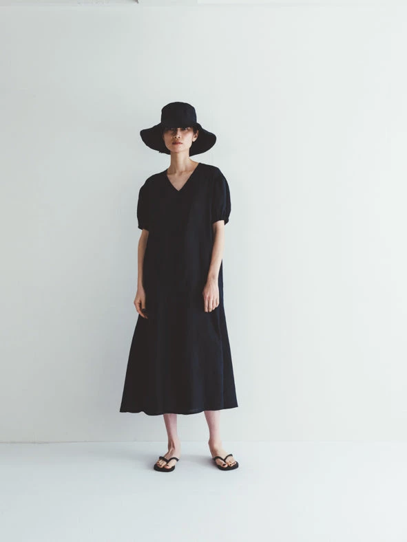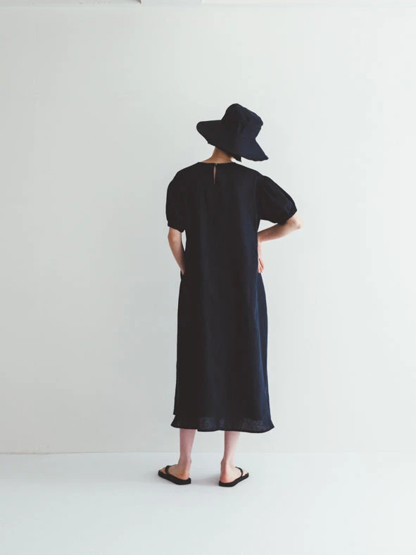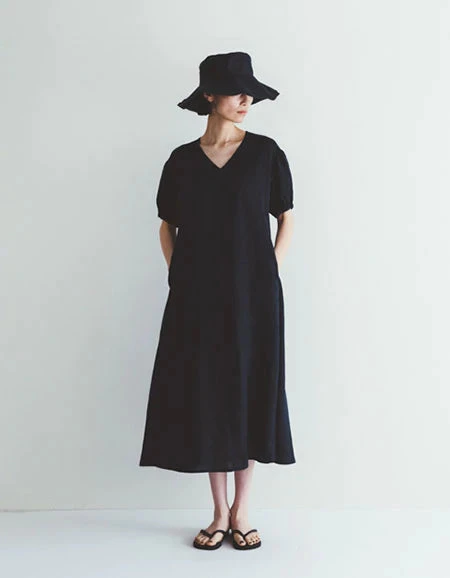 This dress has dropped shoulders and elastic cuffs with slightly puffy sleeves.