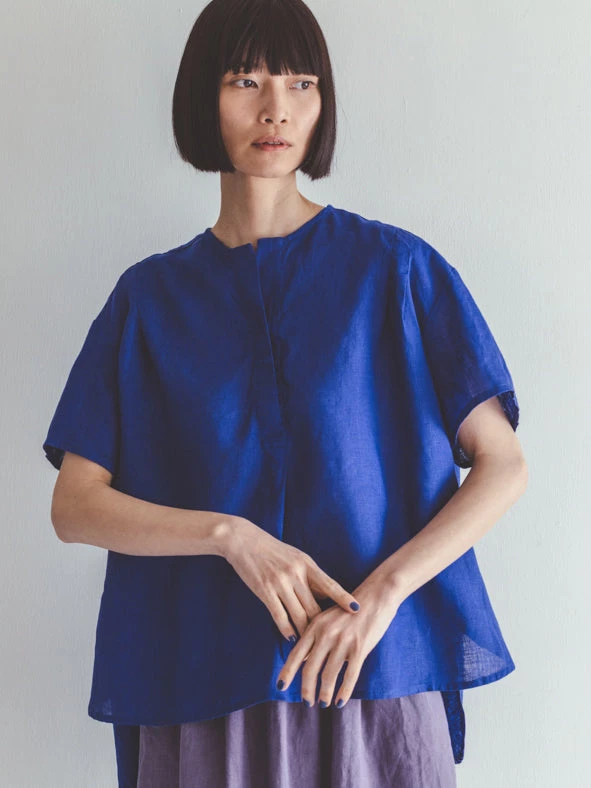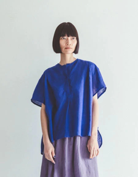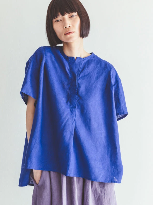 Beautifully modern pullover top featuring tucking detail at the shoulders and hidden placket at the front.