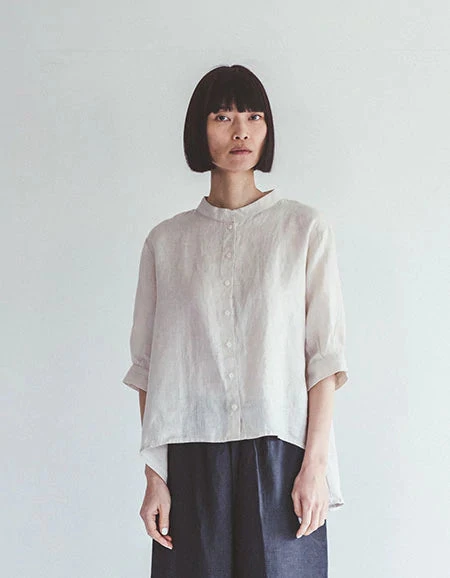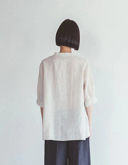 This shirt has slightly voluminous sleeves with tucks at the cuffs.