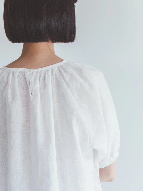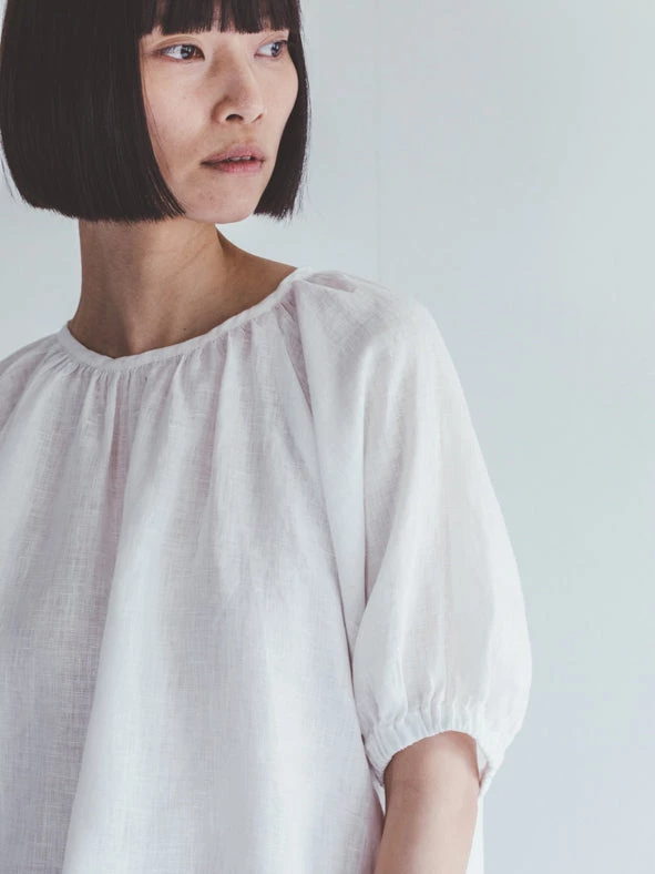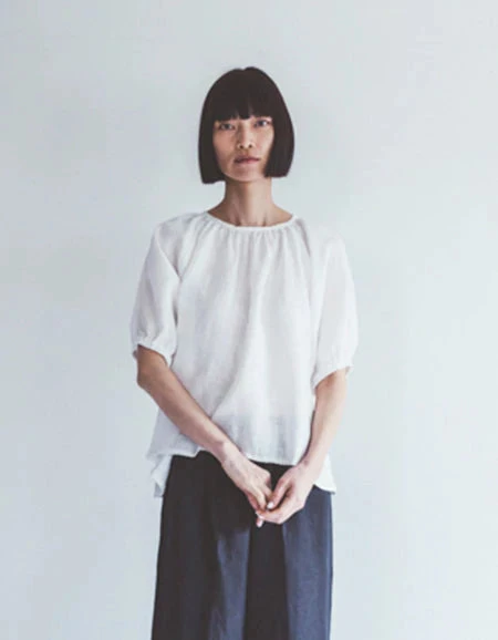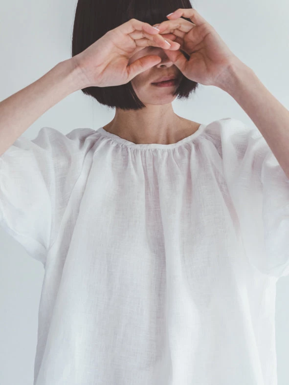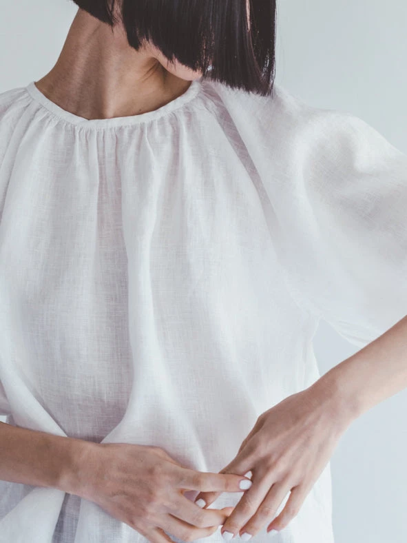 Feminine top with lovely drapes by using our light weight linen fabric.