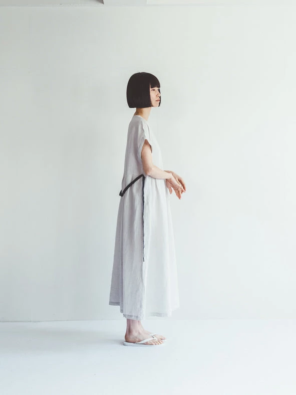 There is a black ribbon at the waist to tie.