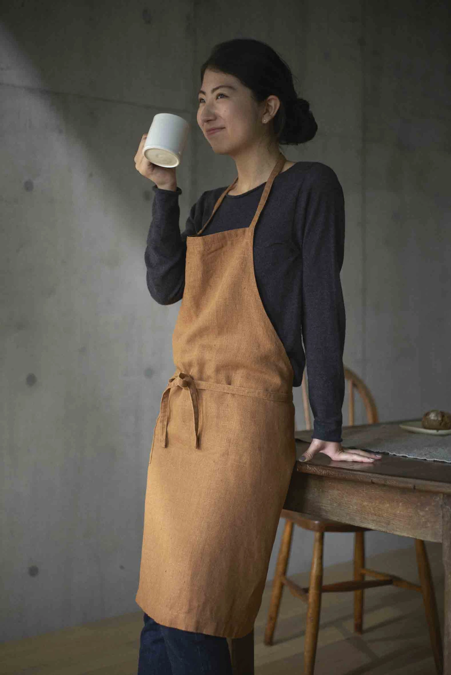 A little shorter than our full apron, the daily also provides full coverage with its classic bib style. Functional and long-lasting, one handy pocket is placed in front for tools, utensils, and, of course, tired hands.