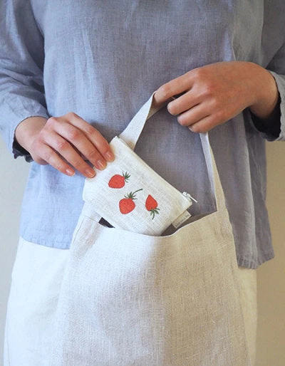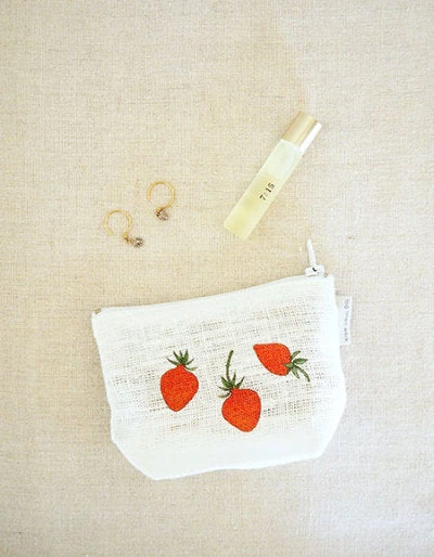 A series of linen fabrics printed with illustrations drawn by French artist Isabelle Boinot. The strawberries drawn by Isabel are so lively and vivid that makes you smile! đ