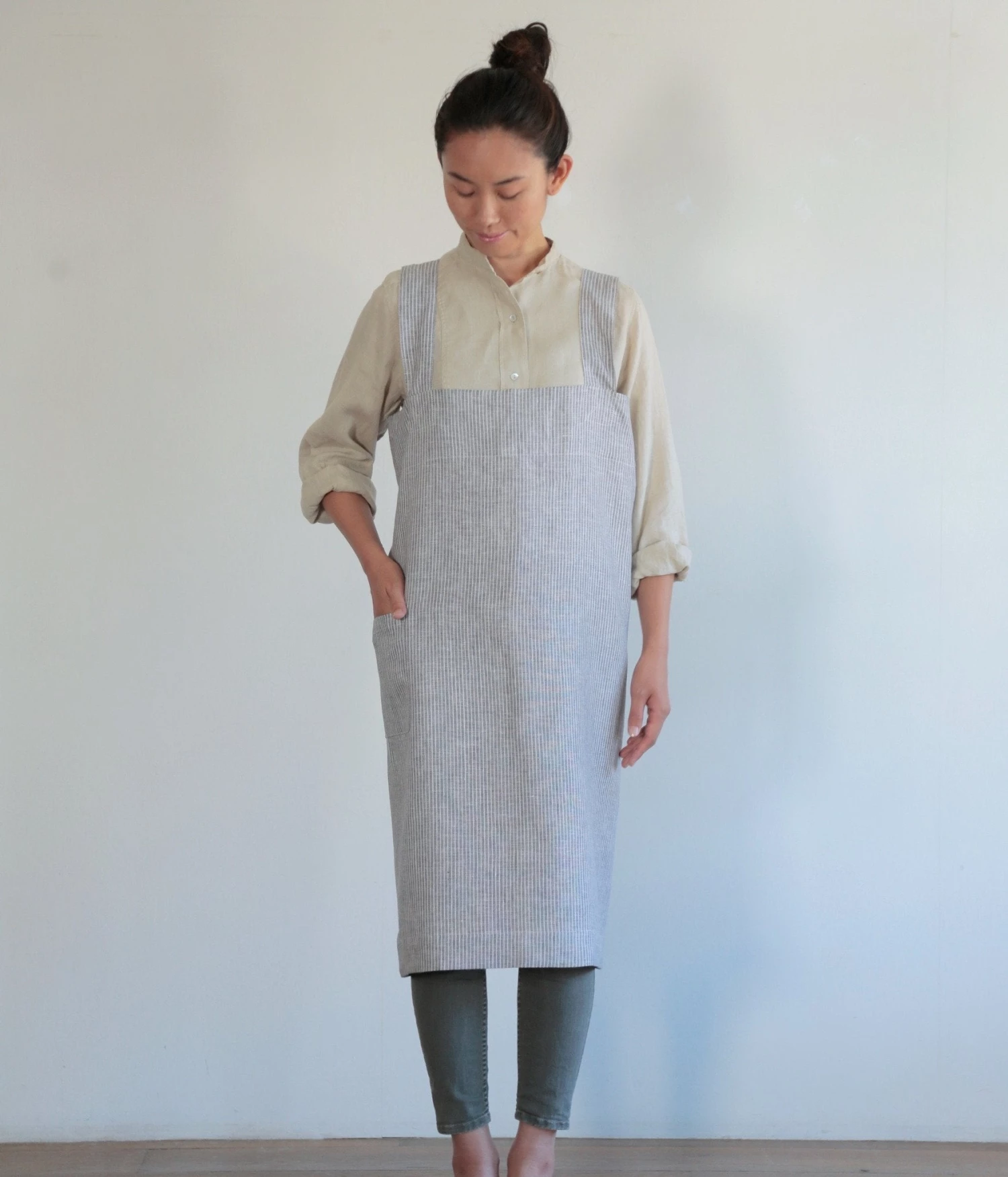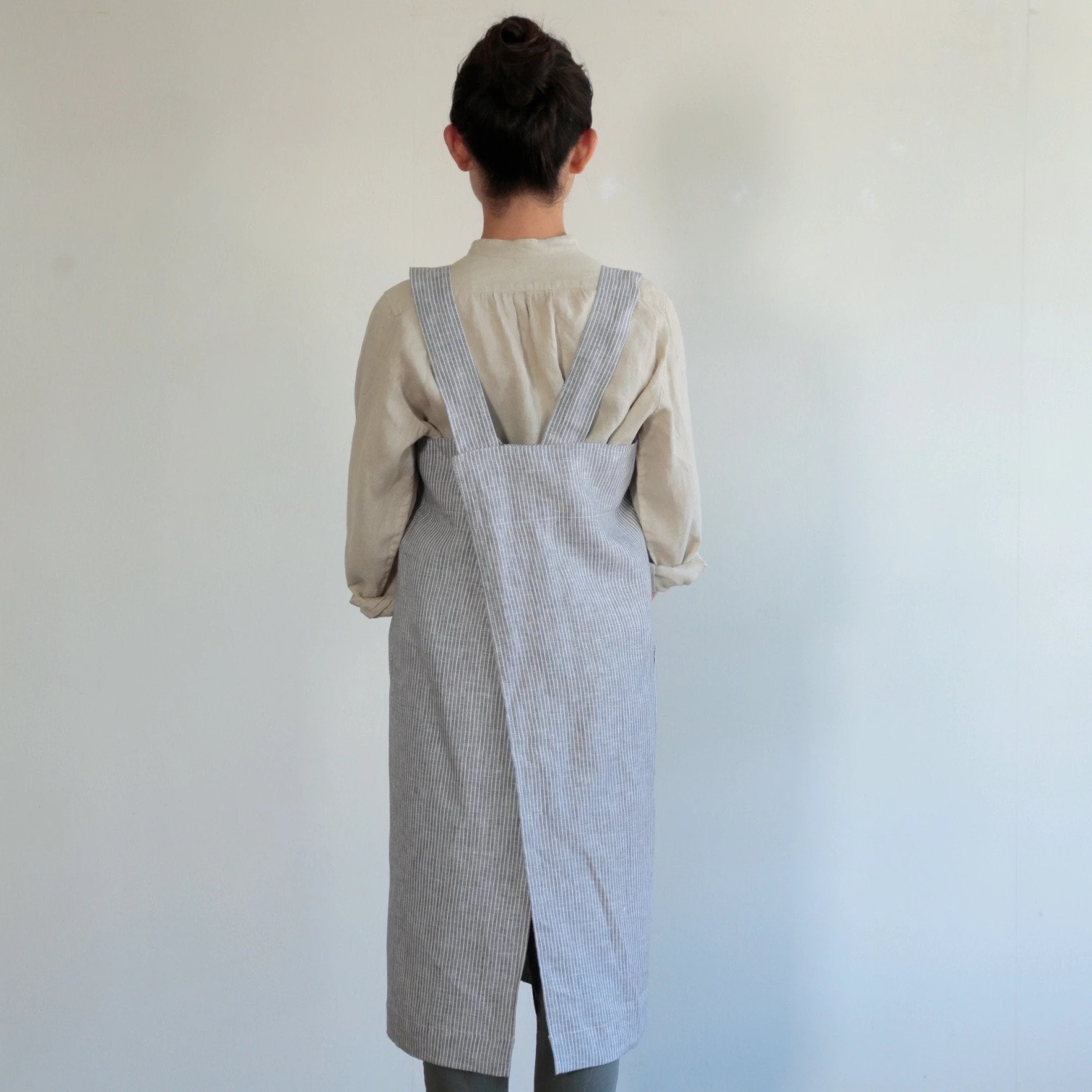 A Fog favorite! Slip it over your head and it will nicely drape into a criss-cross fit along the back. The straps are wide and the body offers full coverage allowing you to get down to business. The long-lasting linen will only get softer and more absorbent with each wash.