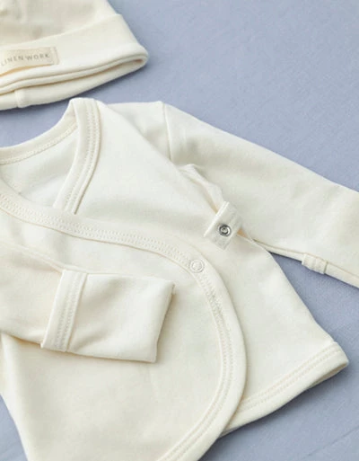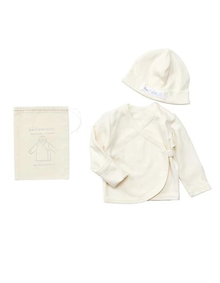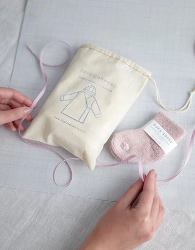 Super-soft, organic cotton baby cardigan and cap. Perfect for the newborn in your life. Packaged in muslin pouch as shown.
