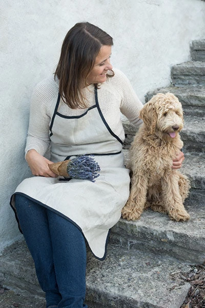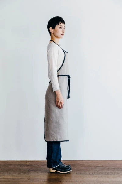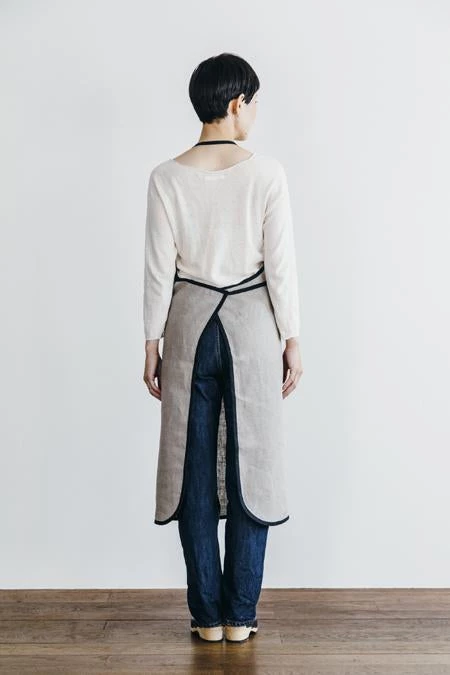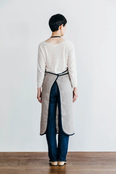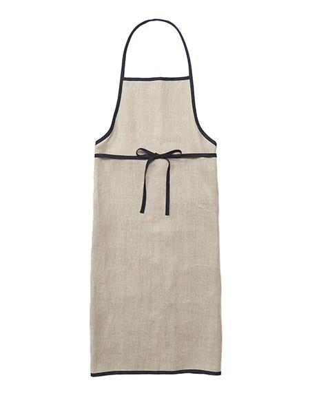 A classic and handsome apron with a black piping detail. Functional and long-lasting.