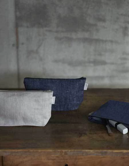 A sturdy little zip pouch in our new linen denim fabric. The wide gusset at the bottom creates enough space to keep lots of your little items tidy.