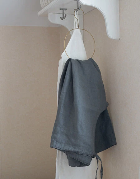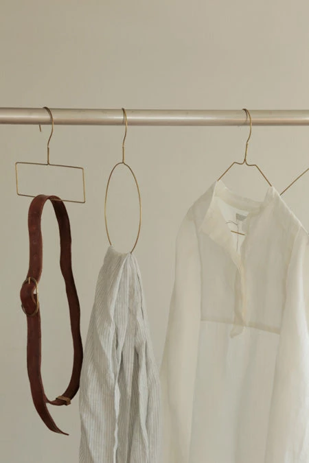 Hand-wrought brass hanger to accommodate scarves and light-weight shawls.