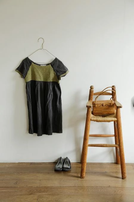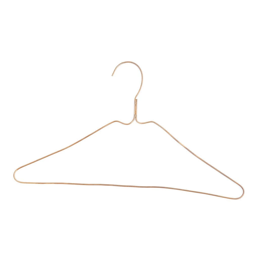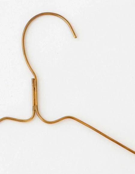 Hand-wrought brass hanger to accommodate lighter items like shirts and dresses.