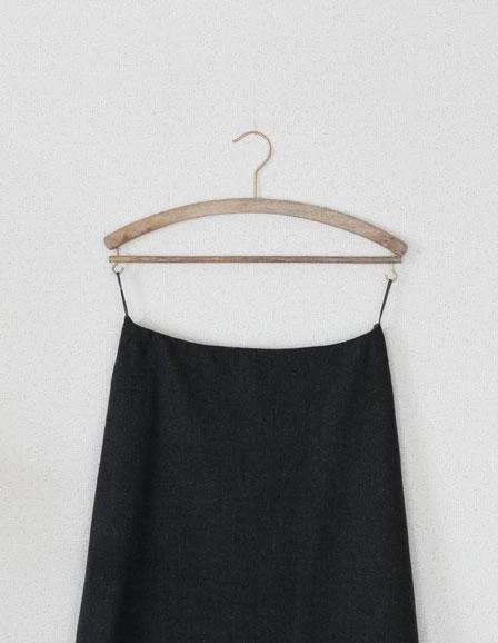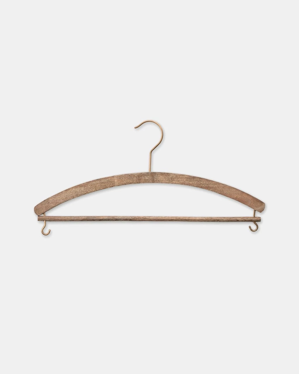 Skirt, dress and pants hanger made of mango wood and hand-wrought brass.